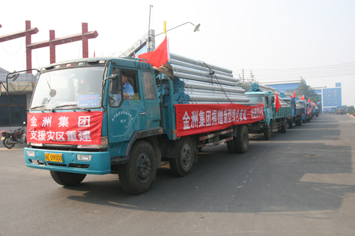 2008年“5.12”四川大地震期間,金洲集團和全體員工共捐款捐物500余萬元,以送溫暖、獻愛心的行動支援災區抗震救災。其中:公司專門捐贈兩火車皮新型飲用水綠色管道——鋼塑復合管85噸,用于災區盡快修復供飲水設施;公司干部職工紛紛解囊捐款126余萬元,黨員繳納特殊黨費126850元。同時為積極響應“汶川大救援,云南大行動”五大行動中之“七彩云南愛心大行動”,云南金孔雀旅游集團公司主動承接四川省臥龍中國大熊貓研究中心的“美茜”、“思嘉”、“芊芊”三只大熊貓的代養工作,并還向四川臥龍特別行政區捐贈200萬元。