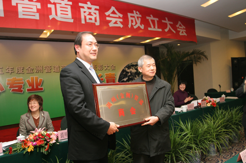 2005年9月,湖州市工商業聯合會批準建立“湖州(金洲)管道商會”,2006年2 月14日召開了會員代表大會,選舉產生第一屆理事會,每年定期組織召開年中會長會議和年終會員大會,并于2011年2月進行換屆選舉,產生第二屆理事會。