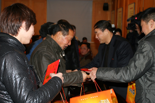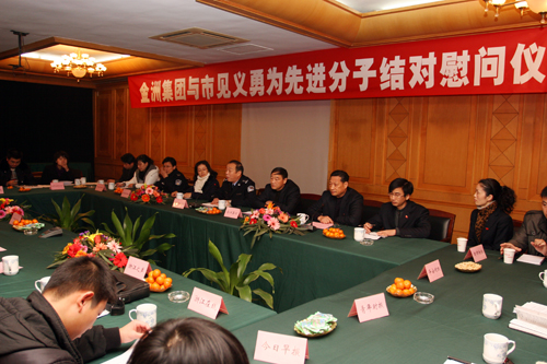 在2010年底的湖州市見義勇為基金會成立大會上,集團公司捐贈基金會成立原始資金50萬元,當俞錦方董事長得知我市18位見義勇為模范飽受著病殘和貧窮的困擾,當即提出了開展見義勇為模范結對慰問活動,由公司黨員和中層干部與見義勇為先進分子“一對一結對幫扶”,此舉得到了浙江省公安廳、湖州市公安局領導的高度重視和湖州市見義勇為基金會的大力支持,并商議在春節前開展見義勇為先進分子結對慰問活動。