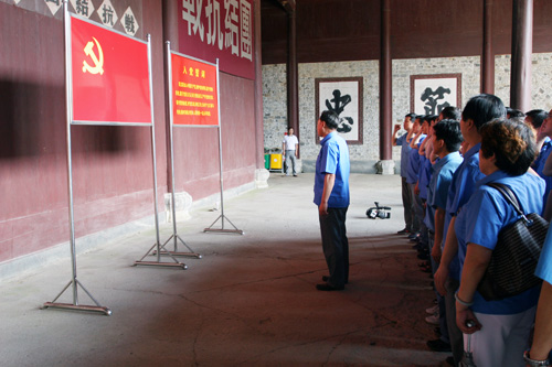 新四軍軍部舊址紀念館位于山清水秀的云嶺鄉羅里村, 1938年直至1941年“皖南事變”期間為新四軍軍部,在中國革命史冊上,留下了光輝的一頁。懷著無比激動的敬仰之情,公司黨員們參觀了軍部司令部、軍部大會堂、修械所、政治部等,穿行在磚木結構的舊宅里,展廳里陳列著一張張珍貴的歷史照片,一件件歷經戰火的武器,尤其是當導游講到皖南事變時,大家都為新四軍指戰員浴血奮戰至生命的最后一刻而肅然起敬 —— “為了社會幸福,為了民族生存”,前赴后繼、英勇奮斗,正是這種崇高信念和浩然氣節,引導和激勵著新四軍壯士拋頭顱、灑熱血、赴國難,不畏艱險、百折不撓地勇往直前。活生生的歷史資料使大家接受了一次革命的洗禮和心靈的震撼,人生觀和價值觀都得到了提煉和升華。在莊重而鮮紅的黨旗下,舉行了新黨員入黨宣誓,老黨員重溫了誓言儀式,表達了對黨的堅定信念和決心,并抒發了對革命先烈的緬懷和敬仰。