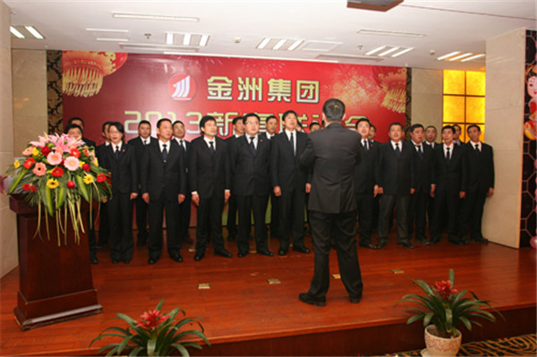 金洲集團2013年新春聯誼會在白蘋洲大酒店舉行,集團總裁周新華致祝酒辭,共慶去年成績,展望新年愿景;管道科技董事長沈淦榮作了“干好‘一三五’,實現‘四翻番’”的表態。