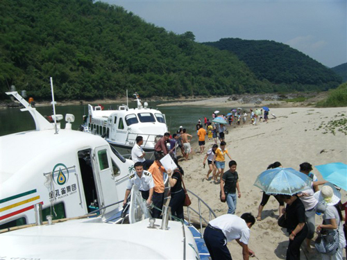 瀾滄江-湄公河航道是一個原始的航道,河道時寬時窄,水流時激時緩,航程中布滿了險灘暗礁,隨處可見河中的激流崖石。每年5月至10月正值洪水期,此時的湄公河洶涌雄奇,富有野性氣息。到了12月至年初4月的枯水期,這時河床變窄,河水也變淺,看起來也會很特別,埋在水里的礁石也大面積地裸露出來,布滿河道,構成了一道道讓人過目難忘的“水上石林”。有的礁石留下了在洪水里長期浸泡后的痕跡。在洪水肆虐無忌地沖刷下,再經過滄桑歲月的精雕細琢、雨打風吹,江里的礁石和鵝卵石看起來都光滑細膩,發出金屬般的光澤,充滿了靈性。這些礁石有的連片,有的獨自突兀在河心,有的如刀削,有的似人工開鑿,造型獨特、形狀各異、無奇不有。如此豐富、細膩而又眾多的礁石完全出自大自然的鬼斧神工,讓人禁不住就生出驚奇和贊嘆。岸邊許多枝繁葉茂的樹,由于長時間在洪水中浸泡,表面的土壤也早讓洪水沖刷而去,大面積地裸露出雜亂交錯卻又十分發達的根系,更顯示出樹本身旺盛的生命力。航行在河面上,兩岸青山相對出,河水滔滔向前流。入目的都是青翠的叢林,撲面而來的都是原始的、野性的氣息。沿河兩岸絕大部分是保持完好的原始森林,風景的變化層次清晰,映入眼底的是大片大片青翠欲滴的竹林,染綠了河兩岸的群山。這些熱帶植物互相盤繞交錯,糾纏不清,各自顯現出個性和特色,就像是一個由杰出的舞蹈團,每一個團員都展示其最出色的舞姿,讓人感受到熱帶雨林獨具魅力的一面。