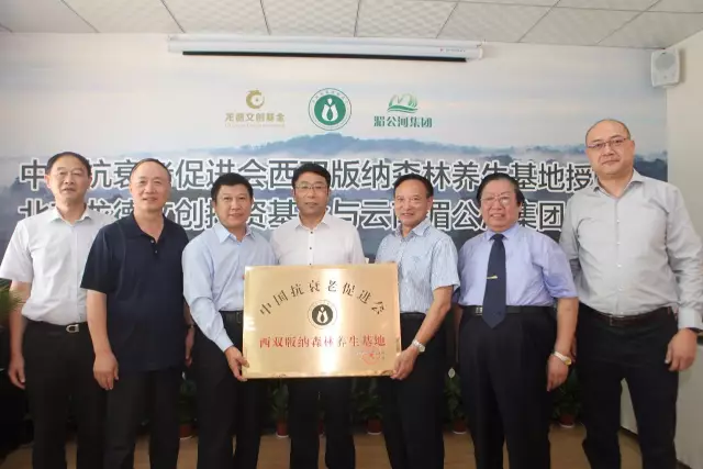 隨后,中國抗衰老促進會顧問冷德貴和中國抗衰老促進會常務副理事長兼秘書長劉仁富共同為中國抗衰老促進會西雙版納森林養生基地授牌,云南湄公河集團董事長俞錦方接牌,標志著西南地區首個大型森林養生基地正式落地西雙版納大渡崗。