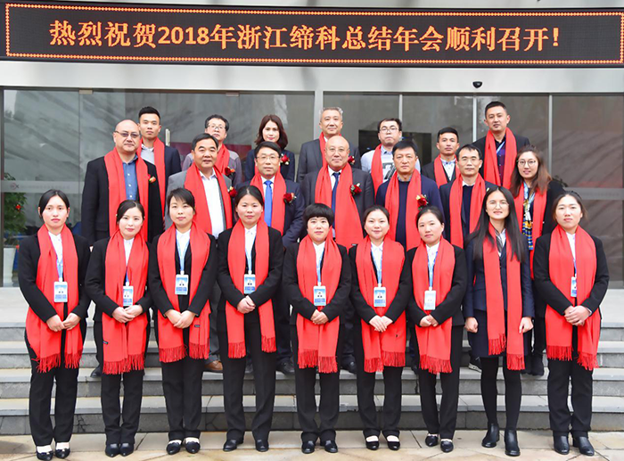 臘梅催春至,瑞雪兆豐年。2019年1月3日,浙江締科新技術發展有限公司(以下簡稱“浙江締科”)在湖州總部大樓召開2018年度總結大會,全面回顧2018年工作,全面部署2019年工作。金洲集團、浙江締科董事長俞錦方,北京巨力創新科技開發有限公司董事長、浙江締科總經理張萬鈞,金洲集團總裁、浙江締科董事周新華,恒瑞琦科技(北京)有限公司總經理周偉,南通富通儀器有限公司總經理王繼東及浙江締科董事會、監事會、中高層管理人員、一線骨干等參加會議。