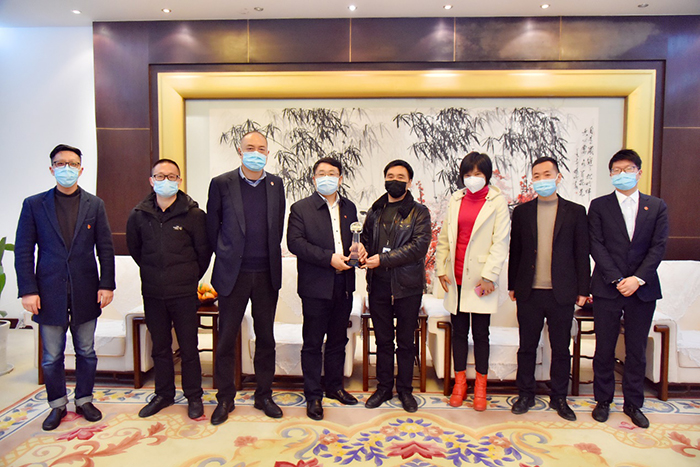 3月3日下午,吳興區湖東街道黨工委書記余勝奎一行到金洲集團有限公司調研座談,并向企業頒發“2019年度億千貿易獎”。金洲集團董事長俞錦方,總裁周新華等熱情接待,并匯報相關情況。