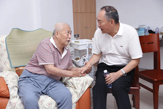 7月21日,中國退役軍人就業創業服務促進會理事長王義,副理事長、金洲集團有限公司董事長俞錦方,專程到浙江省湖州市“海空衛士”王偉烈士父母所在養老院,看望慰問王偉烈士父母及王偉姐姐。促進會副秘書長蘇純明、夏瑋,湖州市退役軍人事務局副局長劉亞利,湖州市吳興區退役軍人事務局局長盛舸等一同參加看望慰問。