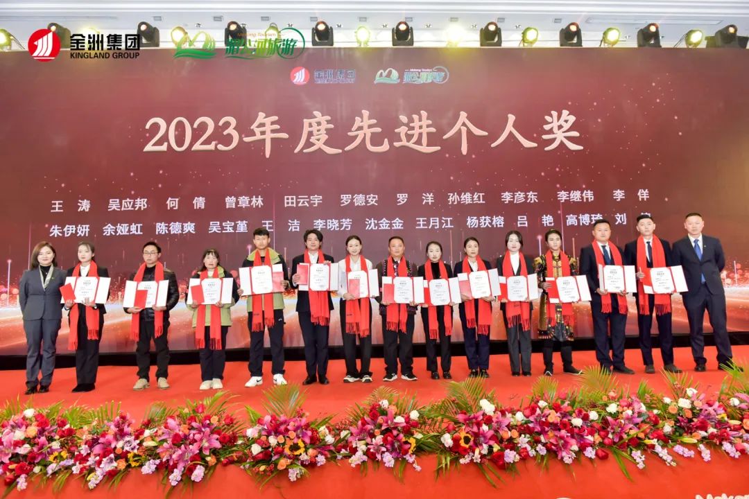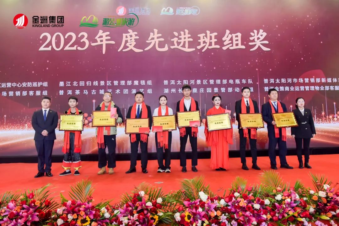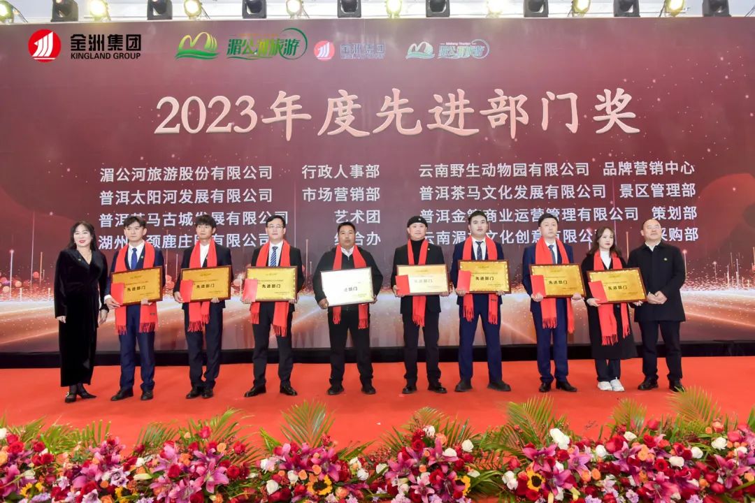 表彰環節對湄公河旅游2023年度先進個人、優秀新員工、先進班組、優秀管理者、先進部門、先進單位、優秀共產黨員、工會積極分子、先進黨支部、忠誠奉獻獎、湄公河旅游微笑大使獎的獲得者進行頒獎。
